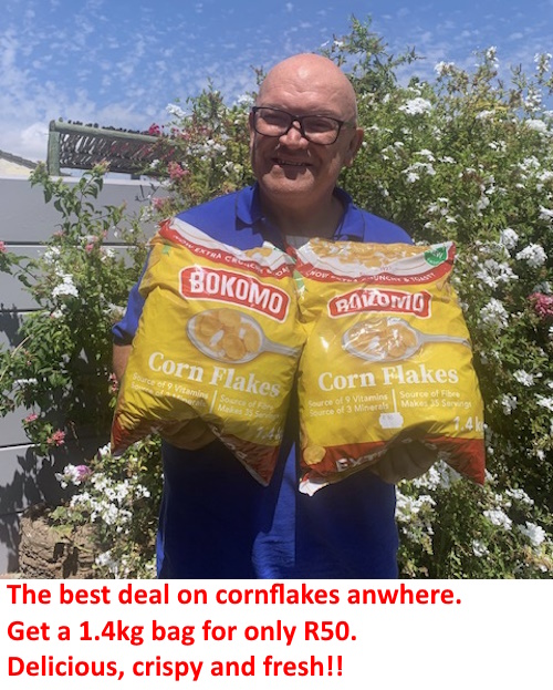 Get 1.4kg Bokomo Cornflakes at only R50 a packet. The normal supermarket price is+/- R140 a packet. I have been having these for breakfast for a week now and they are absolutely perfect and crispy.