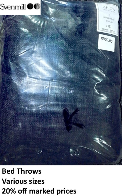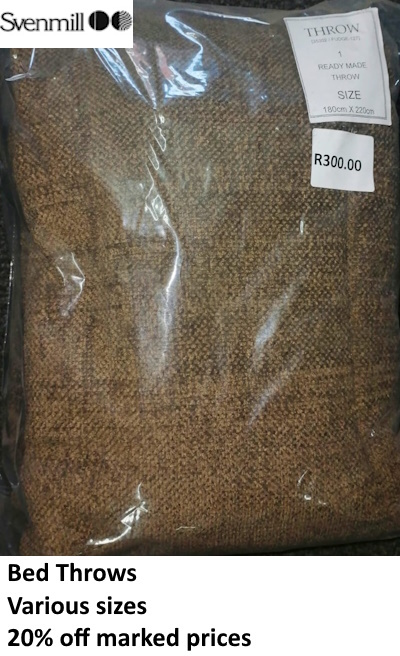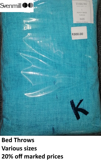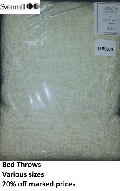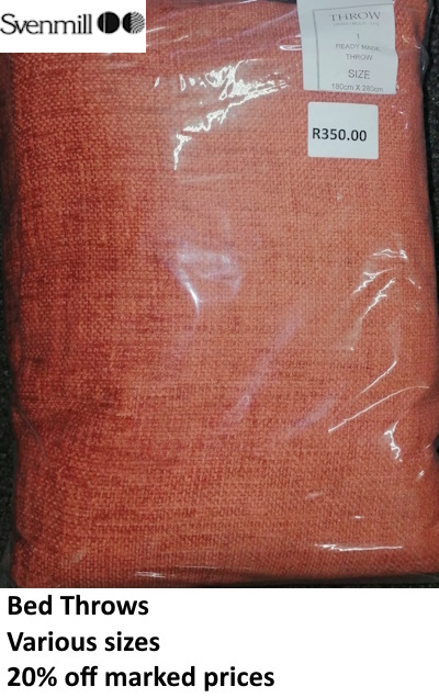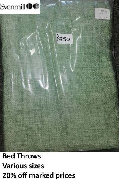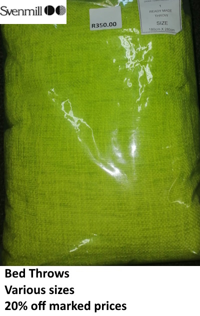 Take advantage of this massive sale on curtaining and bed throws. Quality and prices such as these do not often come our way.