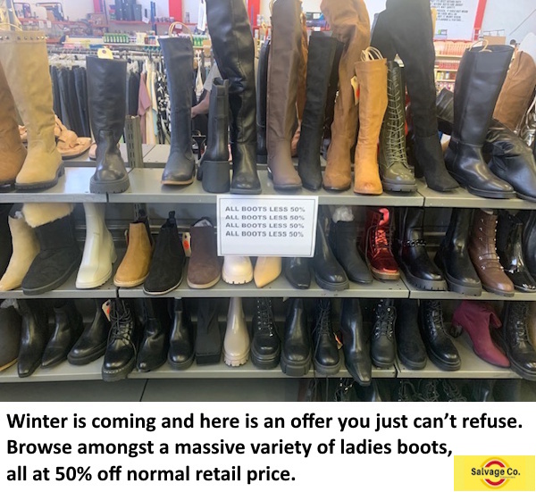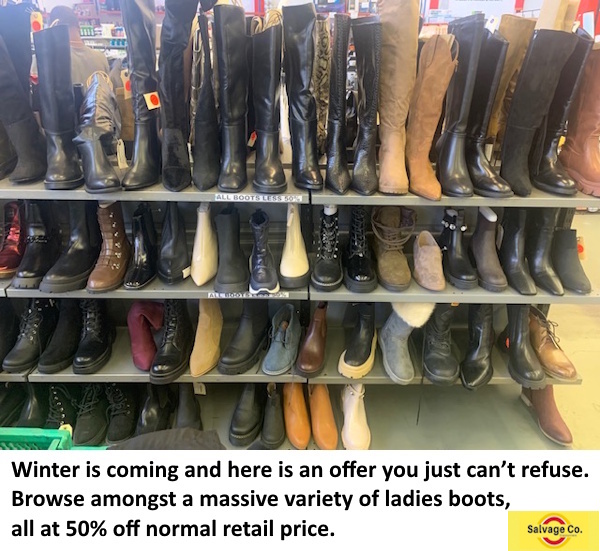 Winter is coming and here is an offer you just can’t refuse. Browse amongst a massive variety of ladies boots, all at 50% off normal retail price.