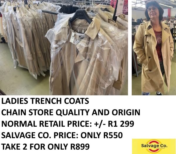 These ladies trench coats originate from a leading national clothing chain. Absolute quality and comfort at a fraction of the normal price.